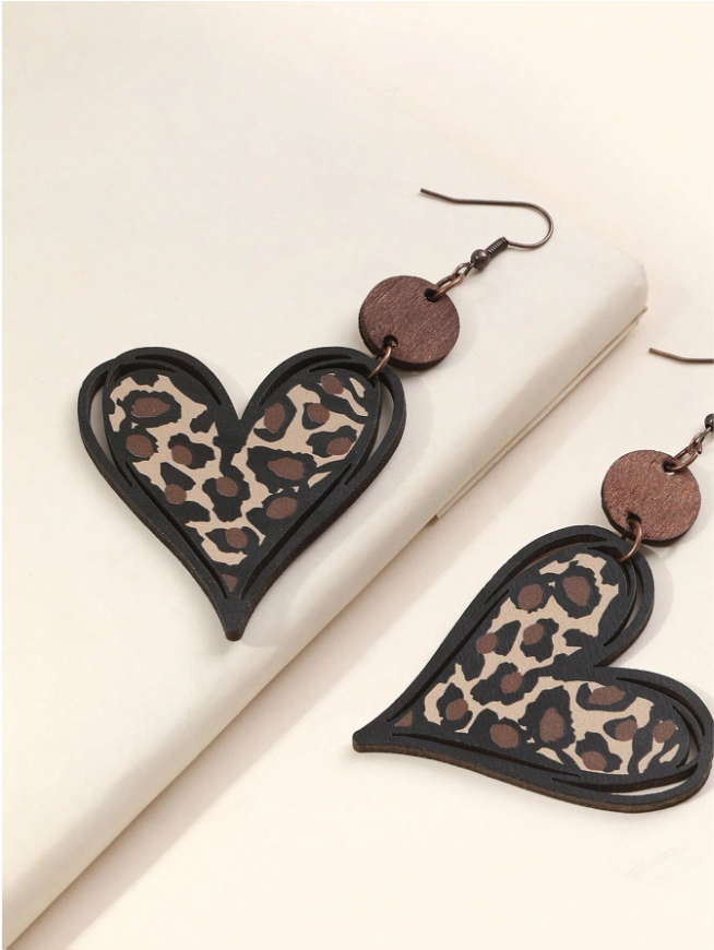 Unleash your inner free spirit with the Wild Heart Earrings. Crafted from lightweight wood with a double-sided leopard print, these heart-shaped drops are a perfect blend of fierce and feminine.